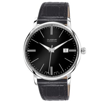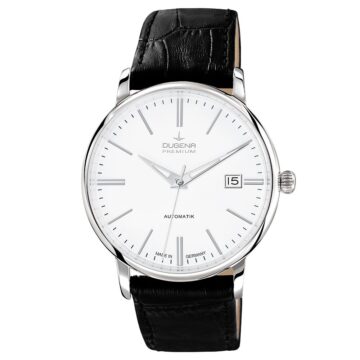 Dugena Herrenuhren Festa Klassik Automatik Silber Lederband Schwarz