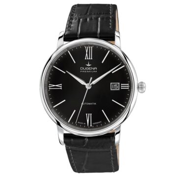 Dugena Herrenuhren Festa Roma Automatik Schwarz Silber Lederband Schwarz