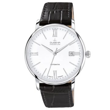 Dugena Herrenuhren Festa Roma Automatik Silber Lederband Schwarz